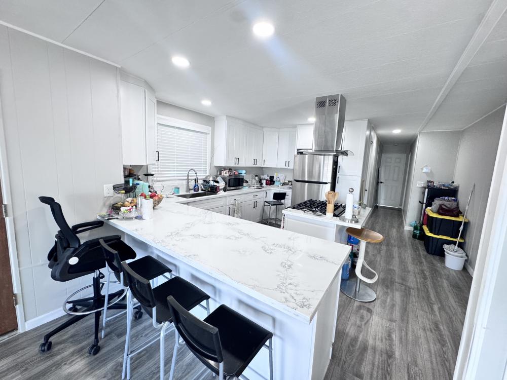 Beautifully remodeled 3-bedroom, 2-bath mobile home located in the desirable Monterey Manor community. This move-in-ready home features a brand-new central A/C and heating system, modern quartz kitchen countertops, new kitchen cabinetry, updated flooring throughout, and new windows. All renovations were completed within the last 6 months. Enjoy low space rent and the benefits of rent control in a well-maintained community. Located within one of the areas with best school districts, making it perfect for families. A must-see home that combines comfort, style, and affordability.