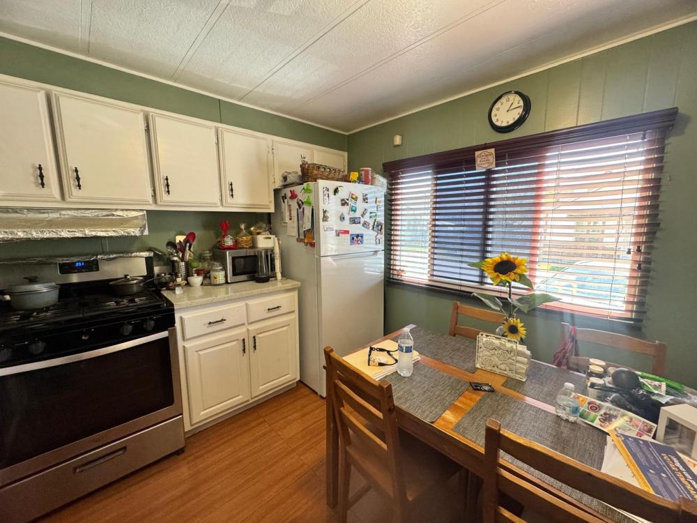 This cozy 2-bedroom, 1-bathroom single-wide mobile home is located in a nice, quiet, and well-maintained small park. The home features spacious living areas with durable linoleum flooring throughout, providing both comfort and easy maintenance.